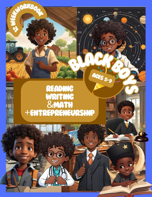 Black Boy Homeschooling Workbook Writing, Reading, Math, Entrepreneurship Ages 5-9