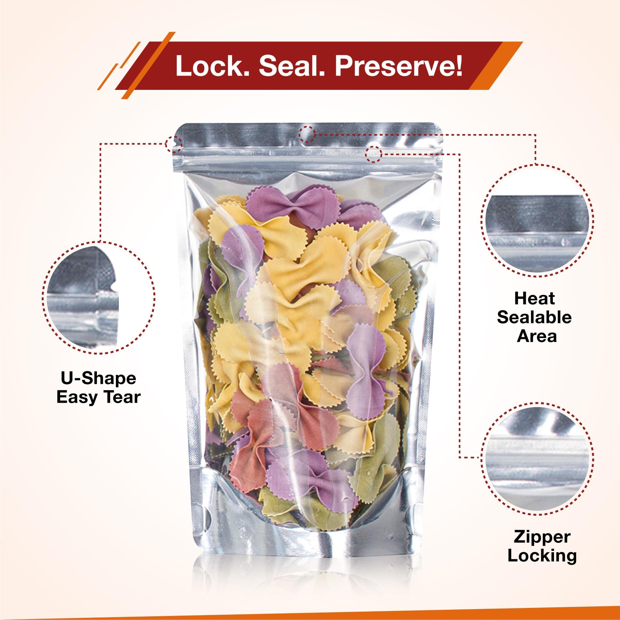 - Clear Front Mylar Bags & Glossy Back: Small freezer pint mylar bags are a must have household item. The mylar food bags transparent front helps to identify the stored product easily